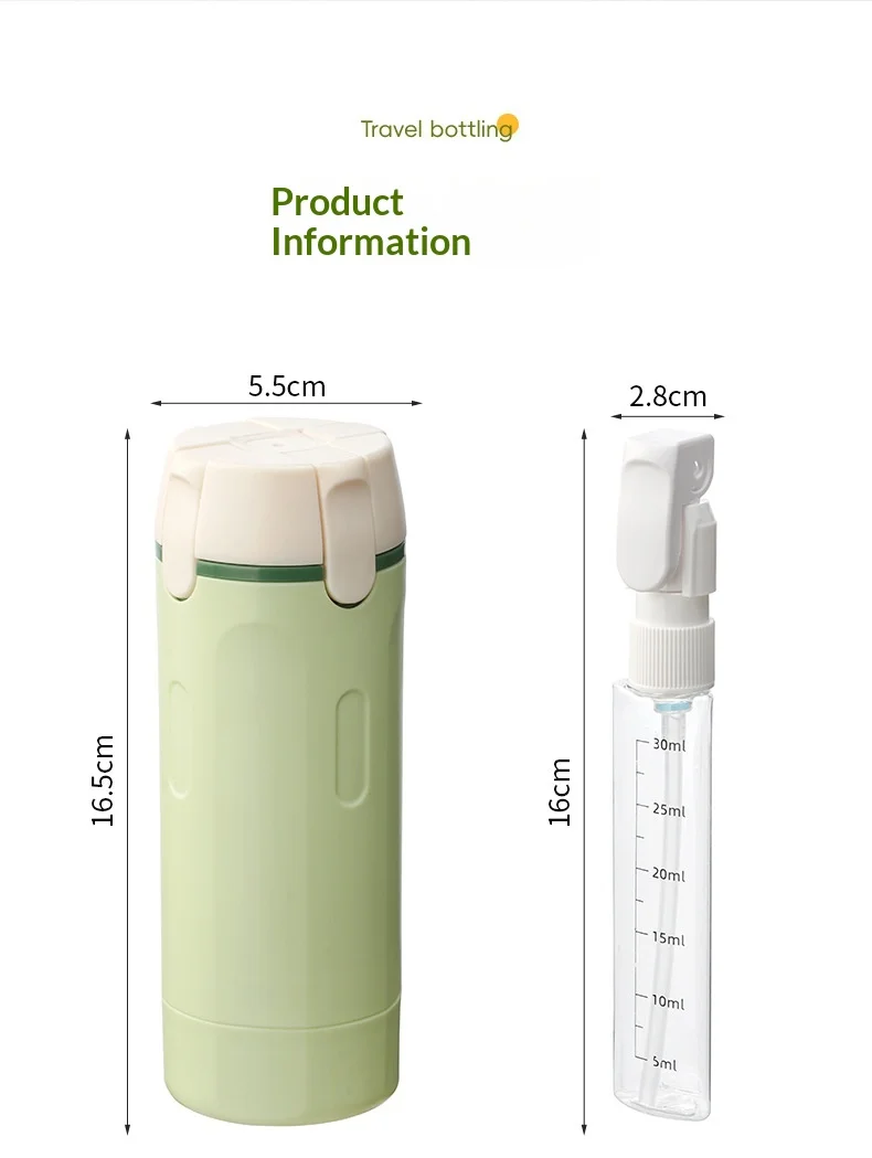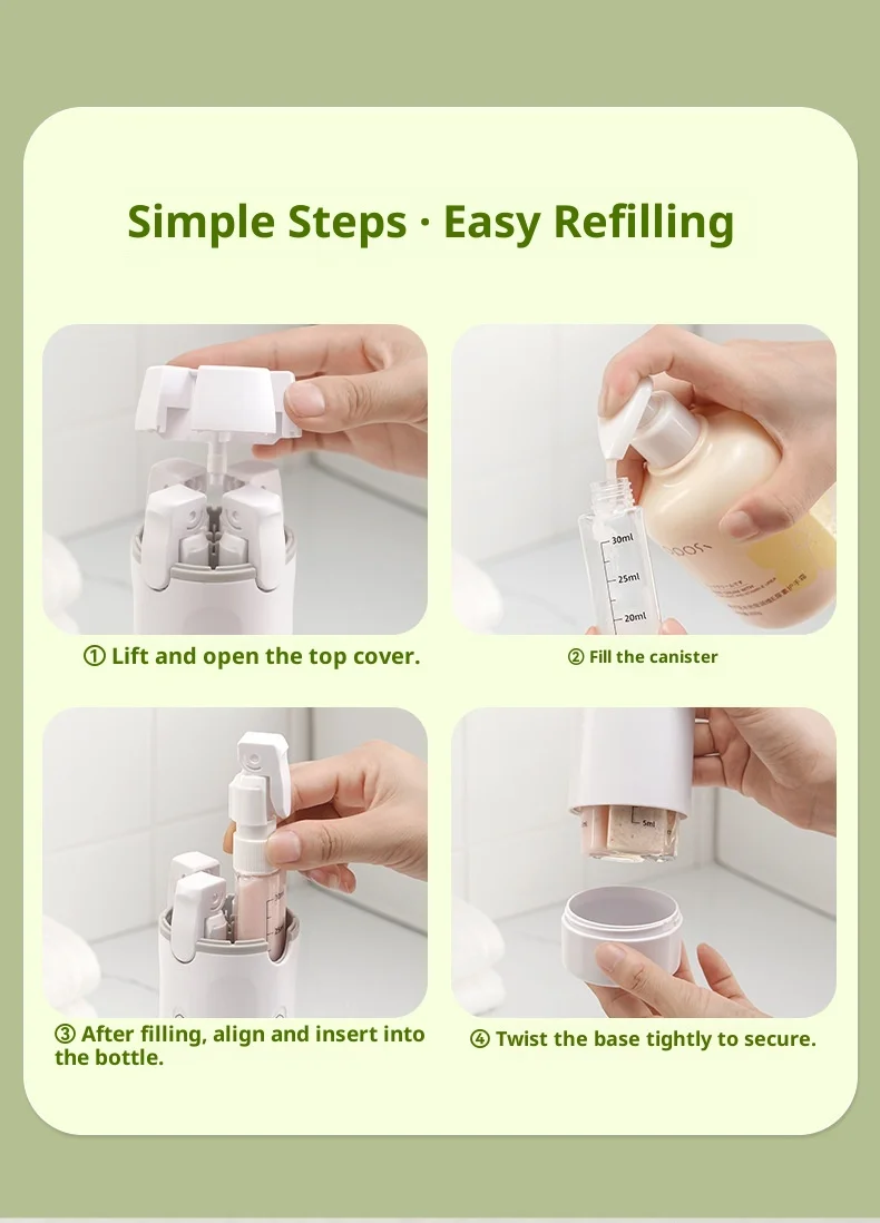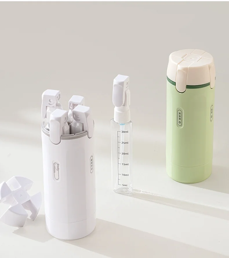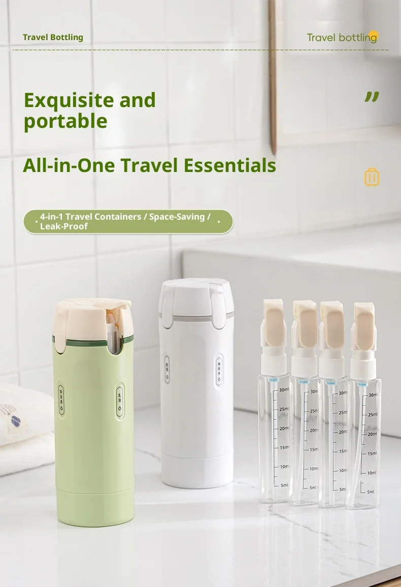 4-in-1 Travel Refillable Bottles, Portable Toiletries and Cosmetics Containers for Shampoo, Body Wash, Travel Storage Bottles