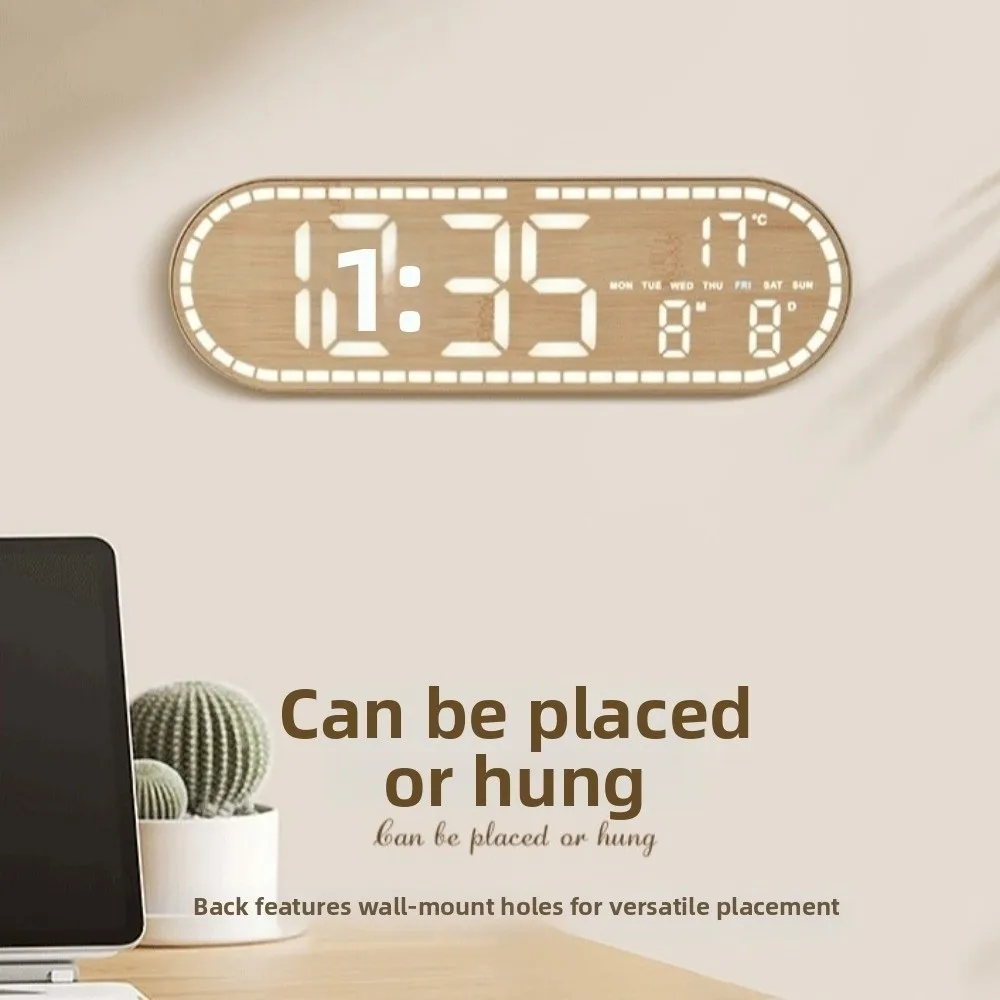 Minimalist Design Digital Wall Clock Silent Operation Nordic Style Alarm Clock Temperature Date Display Hanging Mount