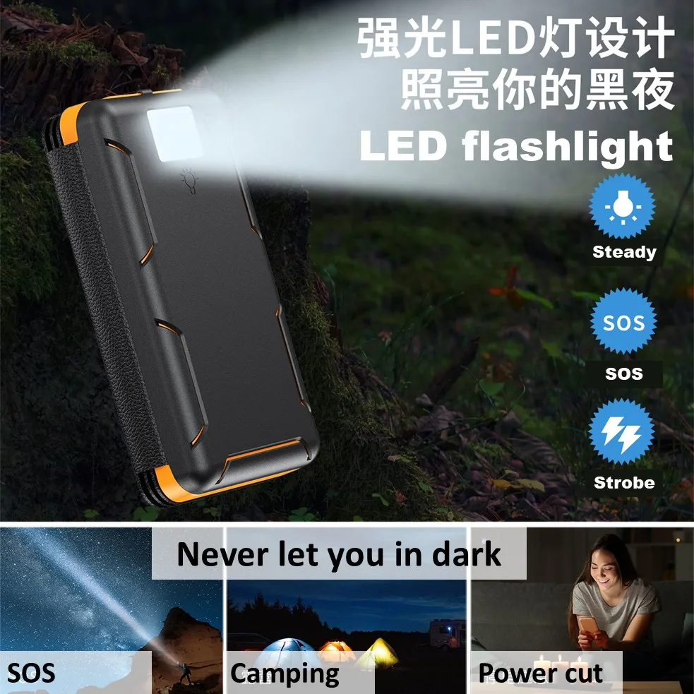 Portable Solar Power Bank,50000mAh External Solar Power Supply,Compatible with IOS Android USB-A And USB-C Charging Outdoor Camp