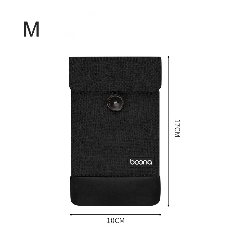 Size: M - 10 cm * 17 cm / 3.93 in * 6.69 in (Holds mobile phones up to 6.1 inches / data cables / headphones / keys / U-discs etc.); L- 11cm * 18.5 cm / 4.33in * 7.28in (Holds mobile phones up to 6.8 inches / 10,000 mAh rechargeable batteries / data cables etc.)